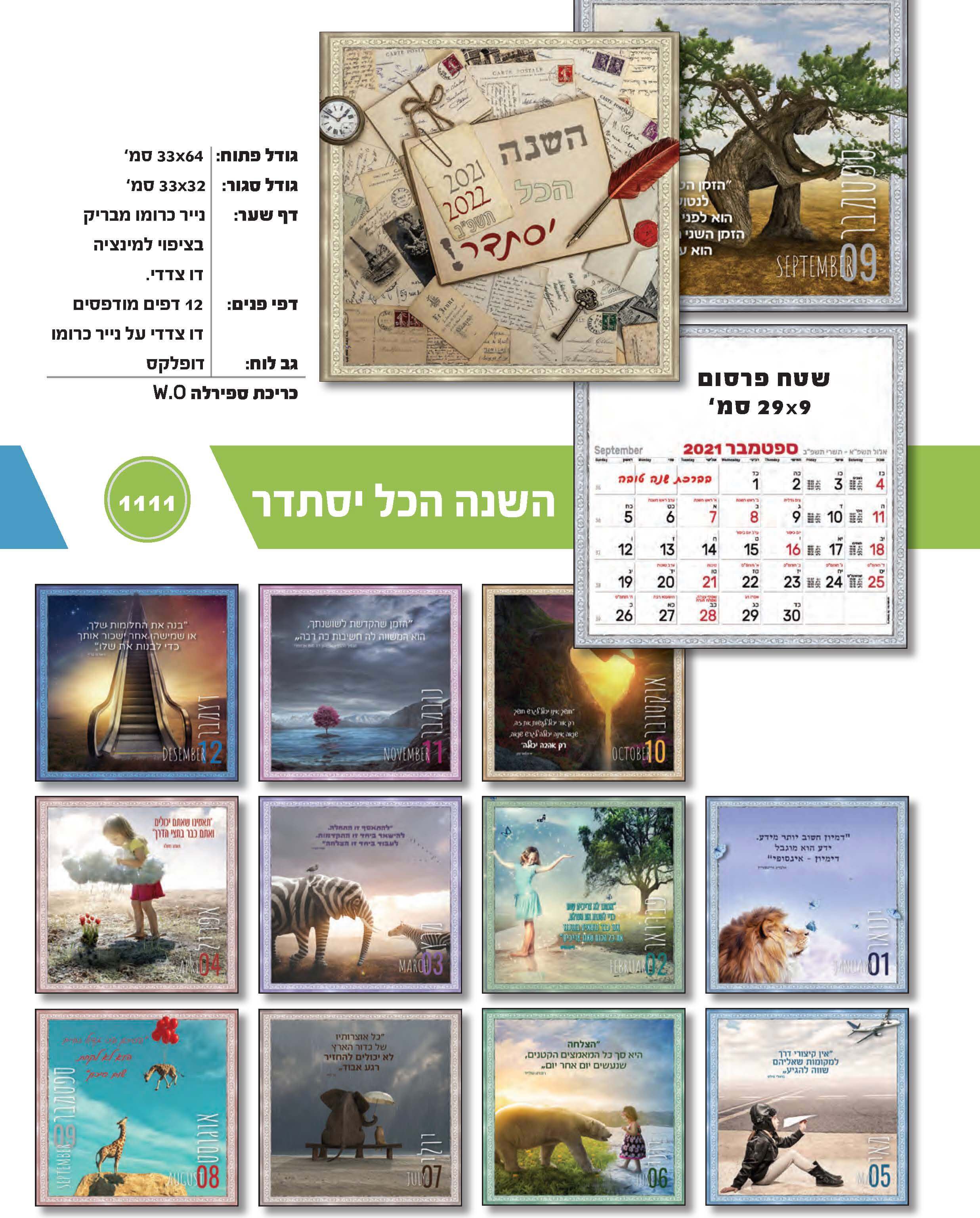 ראשילוחות שנהלוחות קירלוחות שנה קיר מהודרים חודשיים 1/6לוח שנה לקיר - השנה הכל יסתדר