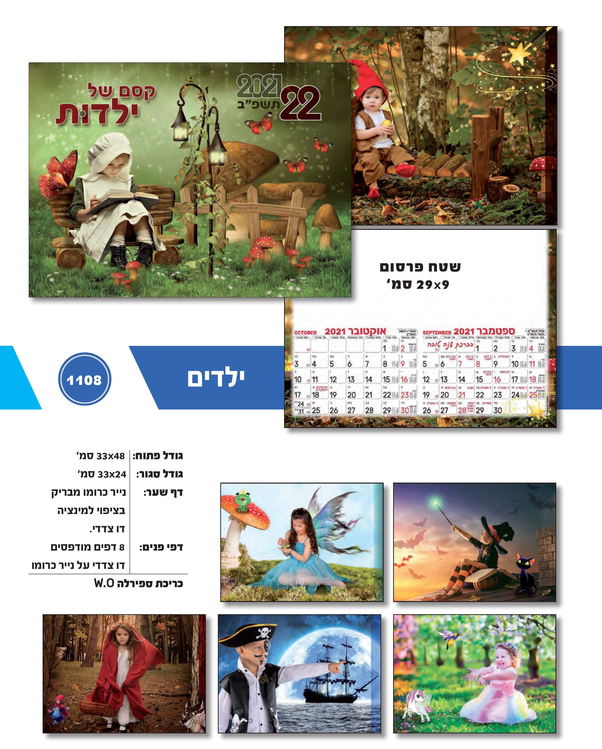 ההדפסה כוללת תמונות מרהיבות הקשורות לילדים ותאריכון דו חודשי נוח לשימוש עם סימון ברור ובולט של חגי ישראל